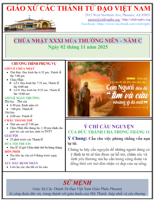CHÚA NHẬT XXXI MÙA THƯỜNG NIÊN – NĂM C (02/11/25)