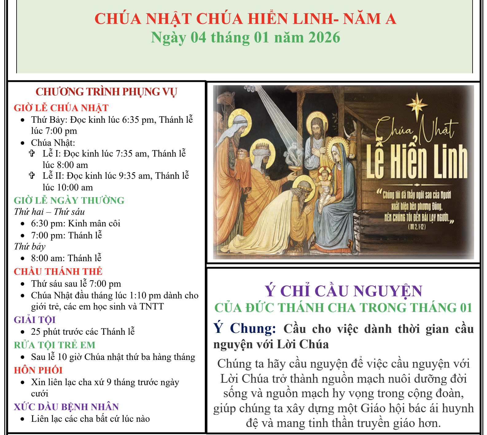 CHÚA NHẬT CHÚA HIỂN LINH (04/01/26)