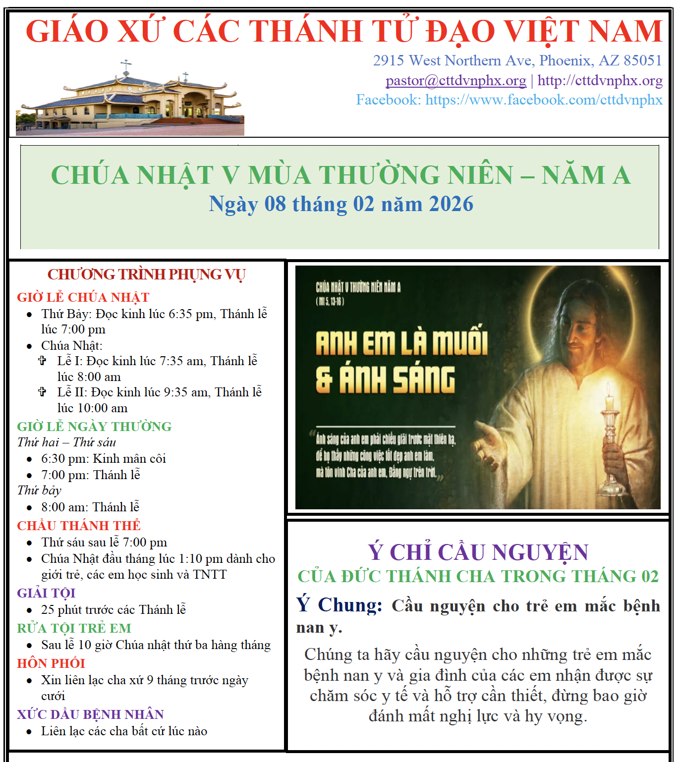 CHÚA NHẬT V MÙA THƯỜNG NIÊN NĂM A (08/02/26)